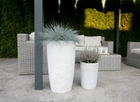Designový betonový květináč s vnitřní i venkovní impregnace proti nasáknutí vodou.