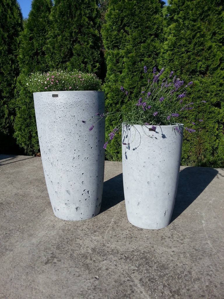 Designový betonový květináč s vnitřní i venkovní impregnace proti nasáknutí vodou.