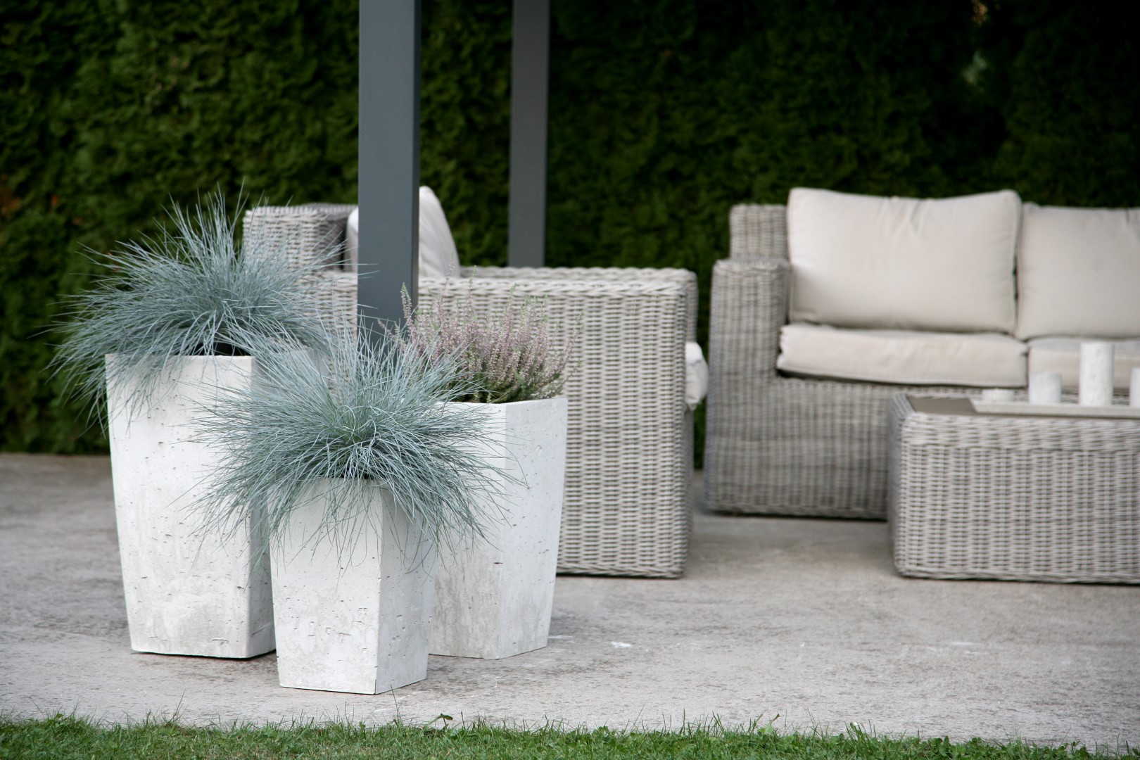 Designový betonový květináč s vnitřní i venkovní impregnace proti nasáknutí vodou.