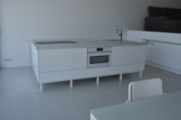 Vyrobili a instalovali jsme zákazníkovi betonovou kuchyňskou desku včetně integrovaného betonového dřezu, výřezy na digestoř, varnou desku a výsuvný elektrický modul.