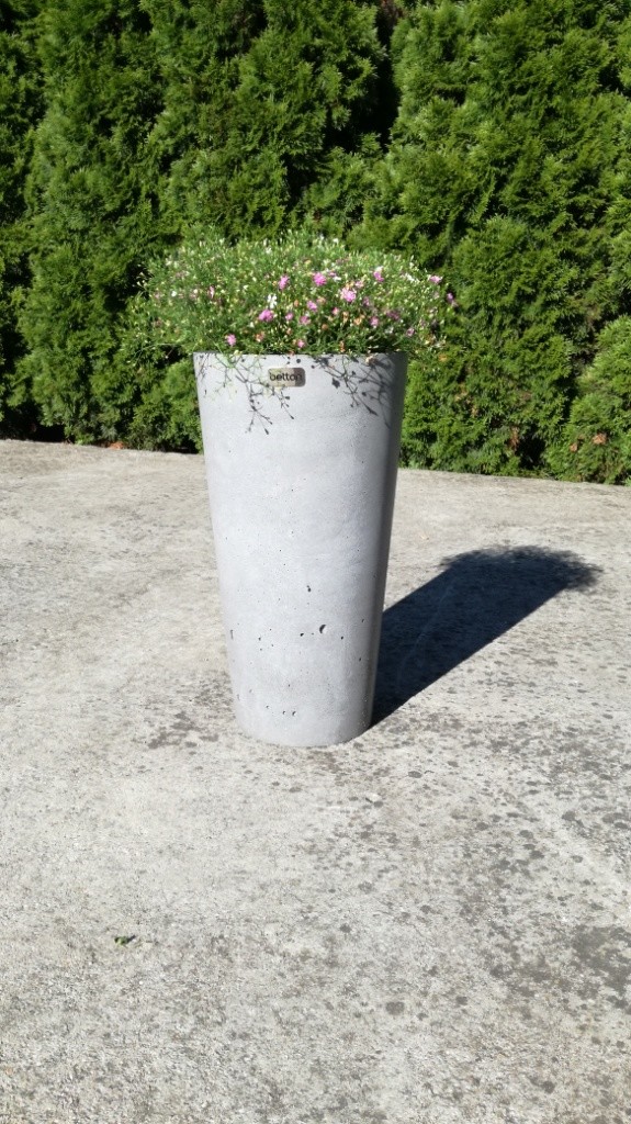 Designový betonový květináč s vnitřní i venkovní impregnace proti nasáknutí vodou.