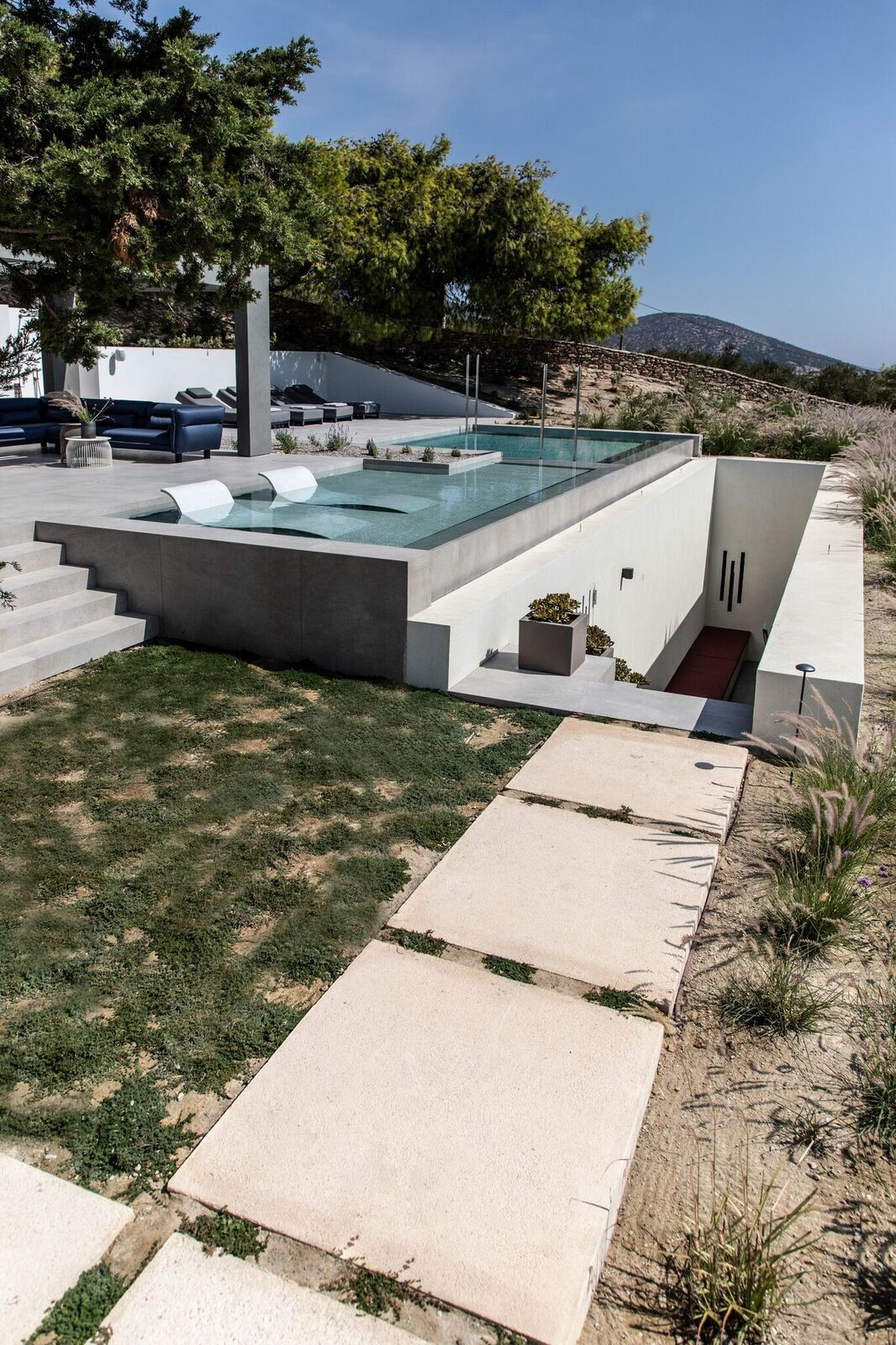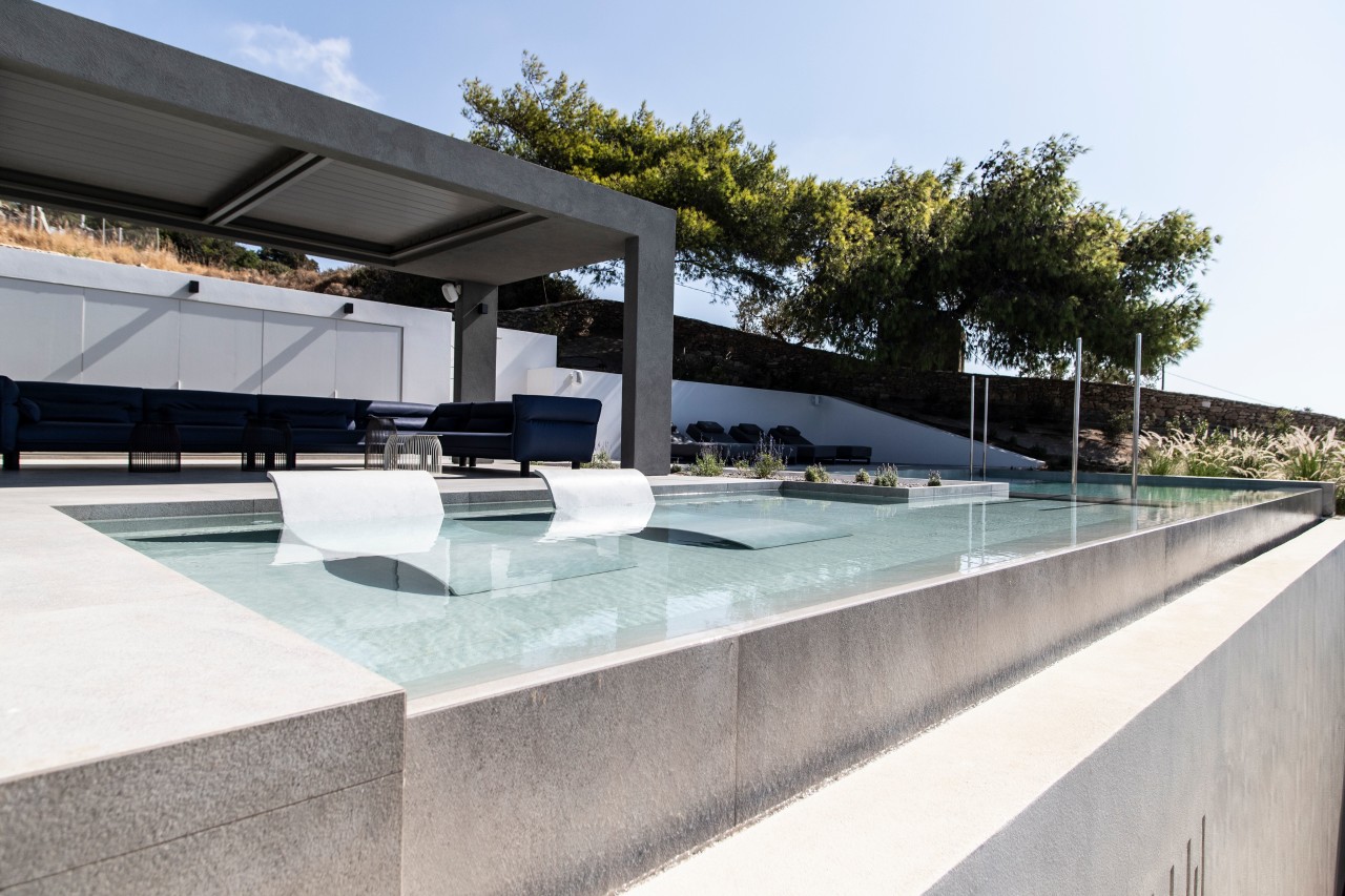 Pro krásnou vilu na ostravě Paros v Řecku jsme vyrobili betonové lehátka, která byla umístěna nejen jako designový doplněk do bazénu ale i jako lehátka k relaxaci s krásným výhledem na krajinu ostrova Paros.
