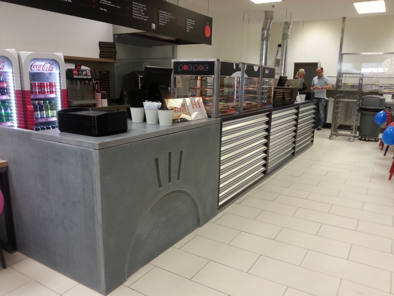 Pro restauraci rychlého občerstvení v Brně jsme vyrobili betonové pulty a jejich obložení.